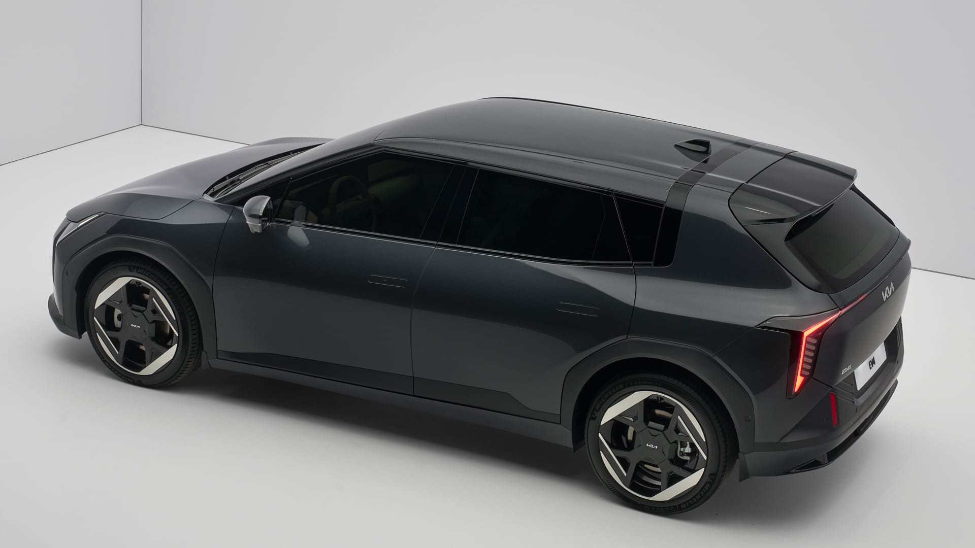 Des éléments de style remarquables, tels que les pare-chocs avant et arrière en forme d'ailes, ainsi que des jantes uniques de 19 pouces au design triangulaire, confèrent à la Kia EV4 GT Line une allure plus dynamique et futuriste.